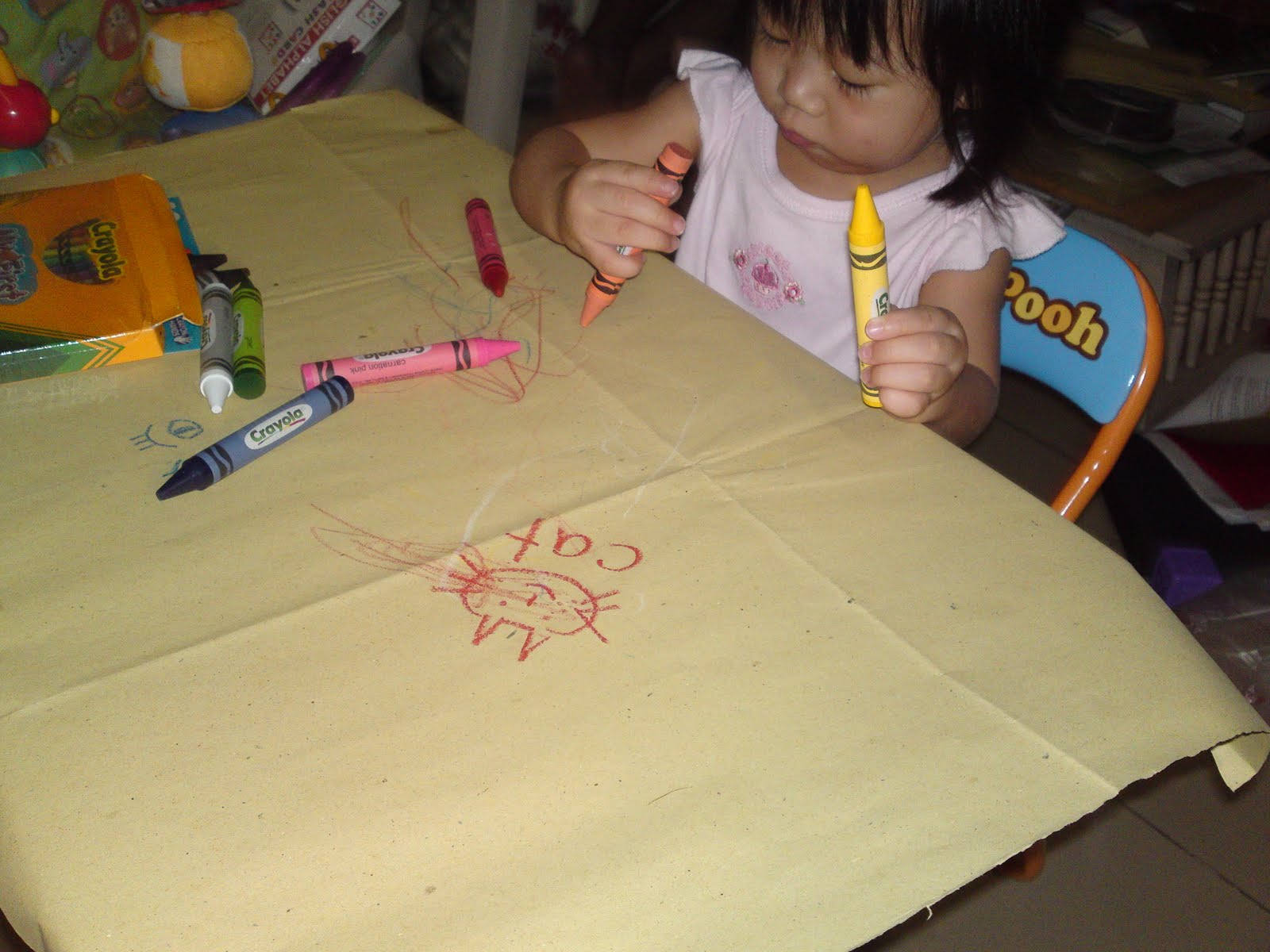I had an enjoyable day. I started my morning with some art work where mommy, daddy and myself simply drew and doodled on the table covered with paper.